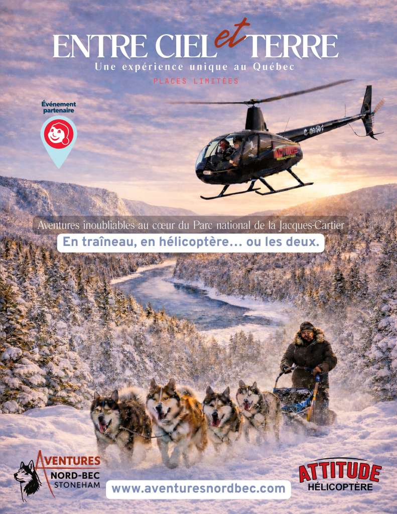 Nous sommes fiers de proposer cette expérience en collaboration avec Attitude Hélicoptère, un opérateur aérien reconnu pour son professionnalisme, sa sécurité et la qualité de ses vols panoramiques au Québec.